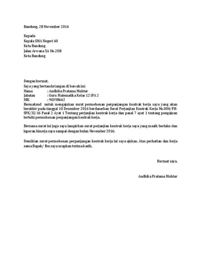 Contoh Surat Sambung Kontrak Kerja - Contoh Surat Permohonan Perpanjangan Kontrak Kerja Guru Pdf